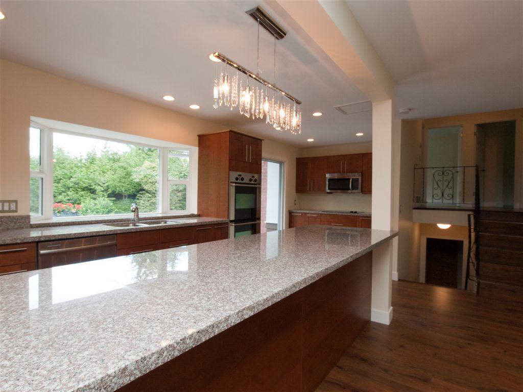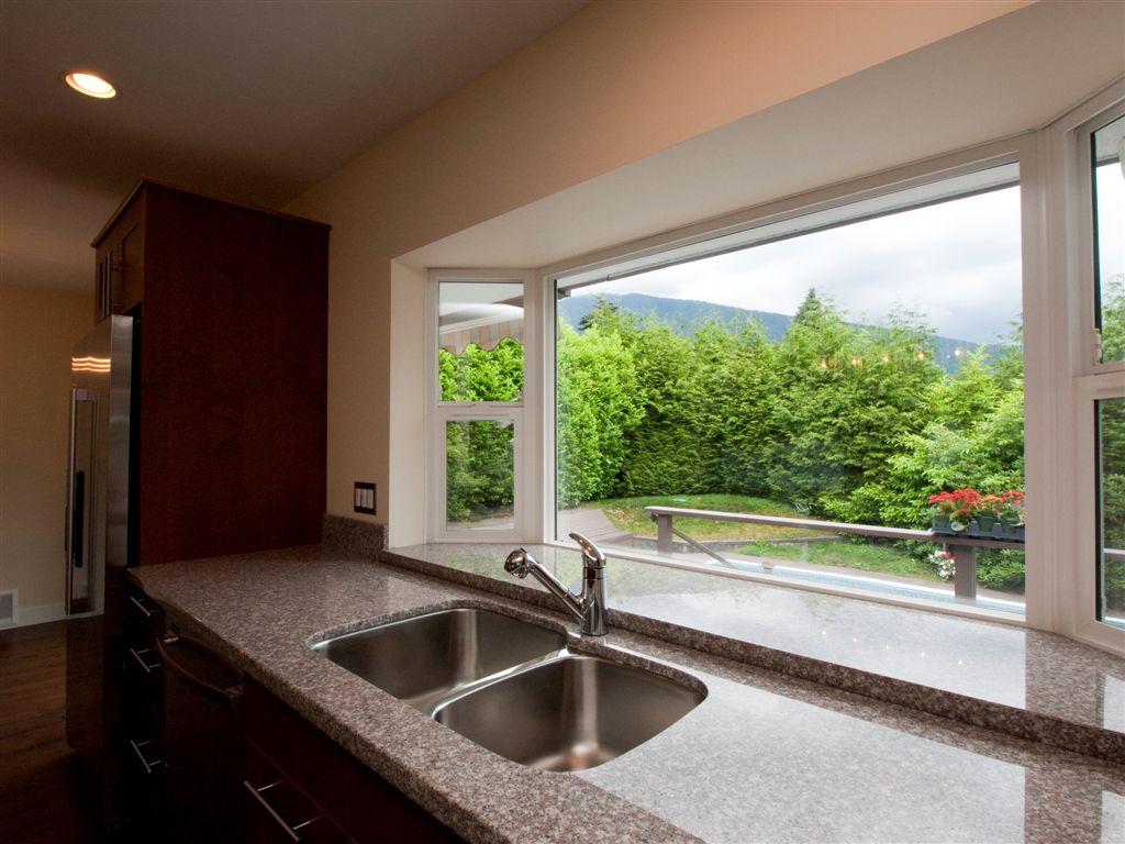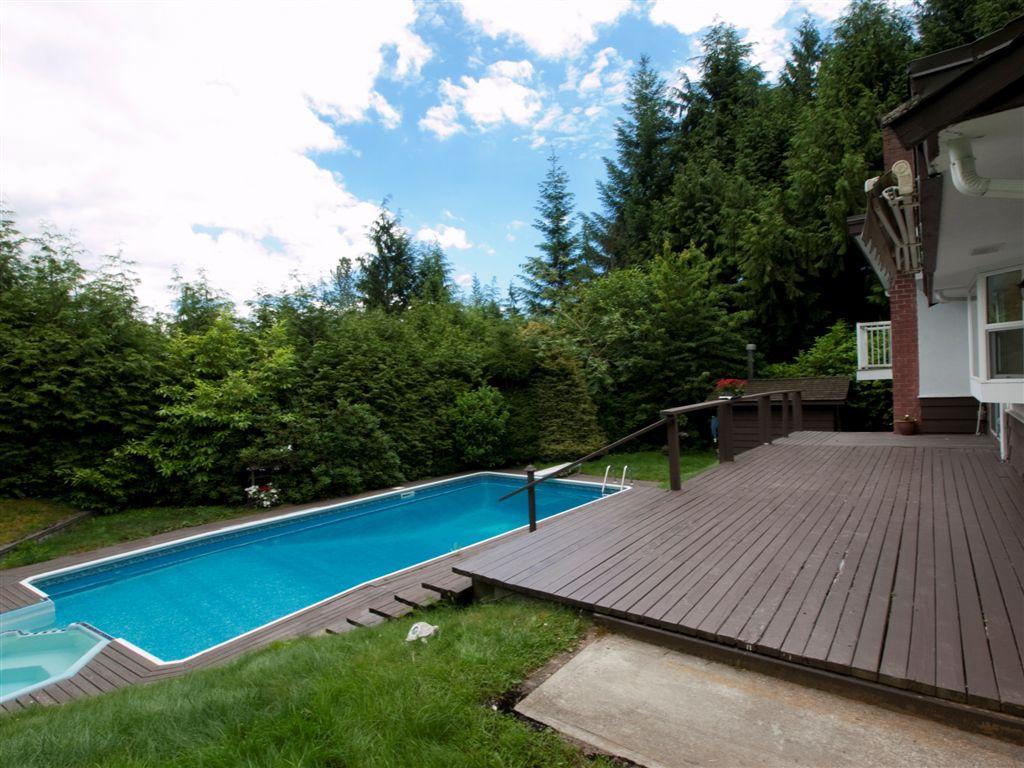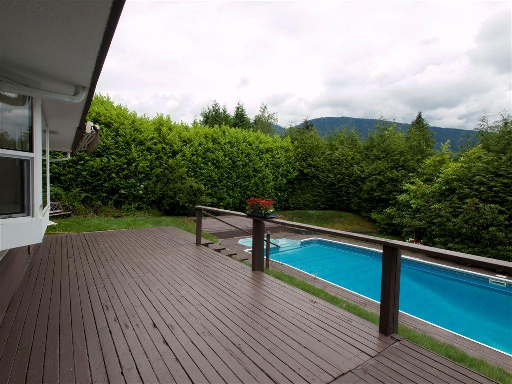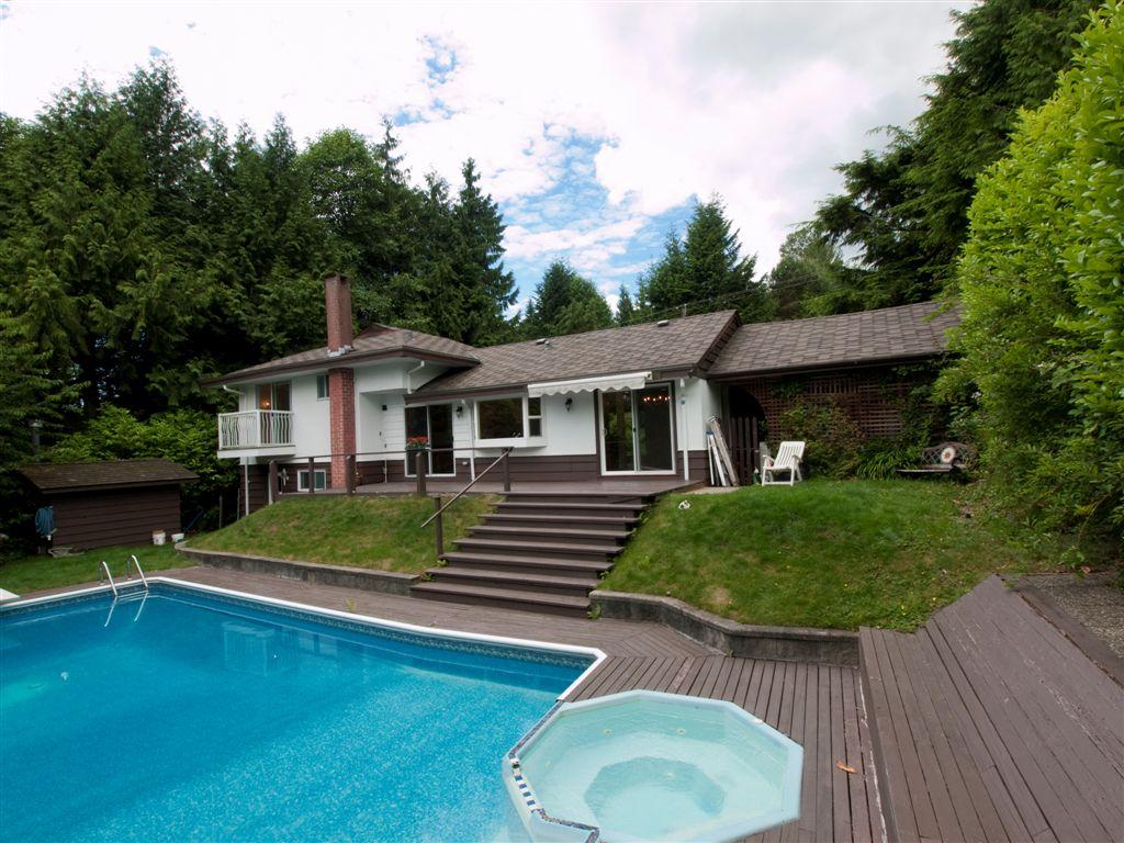 Lovely views of Grouse Mountain from this completely renovated three bedroom split level home. Located within a short walk to Collingwood School this open plan home sits on a very private 12,400 sq.ft. lot with an inground pool and hot tub. Gleaming hardwood floors, floor to ceiling windows, stunning new kitchen with granite counters and stainless steel appliances. Three spacious bedrooms up and a newly renovated bathroom, down has a large rec room, laundry room and a second renovated bathroom. Absolutely nothing to do but move in and enjoy!