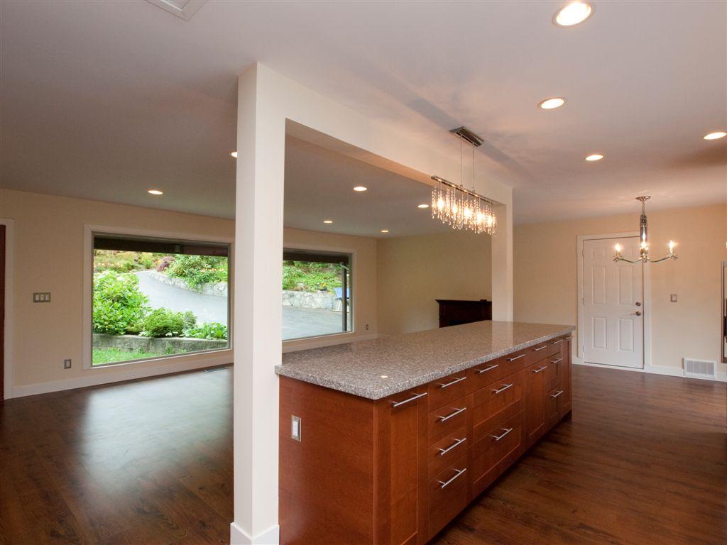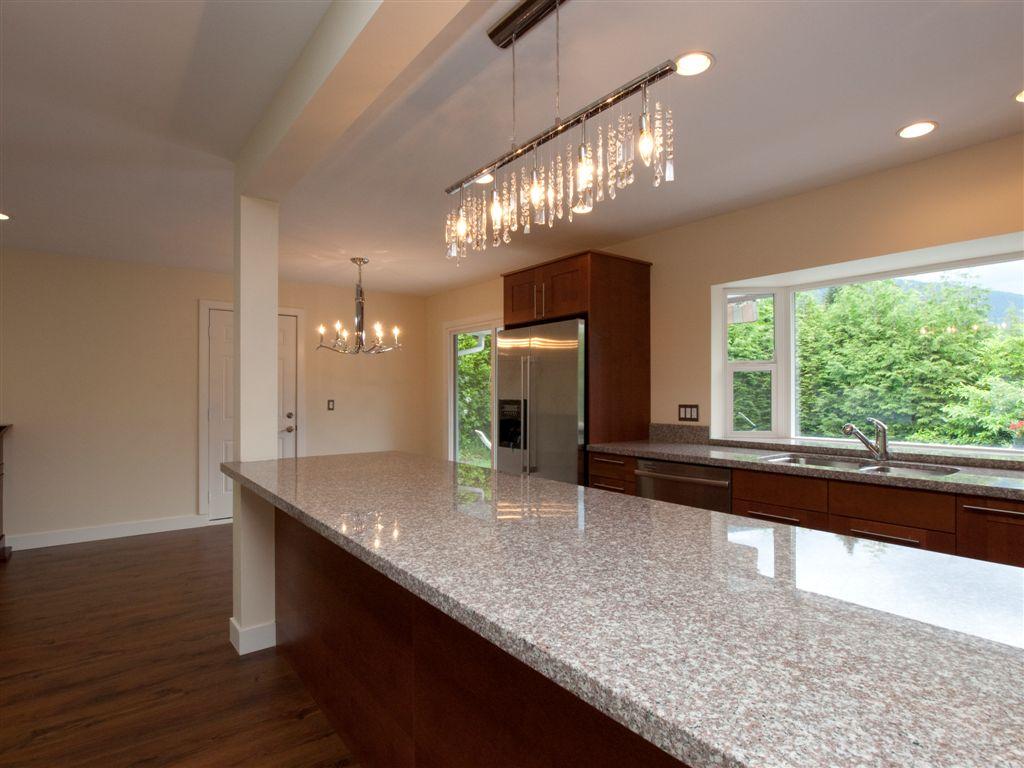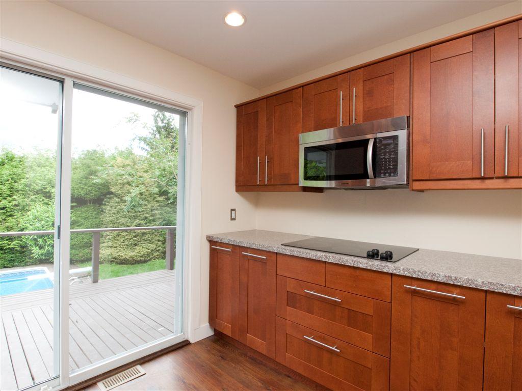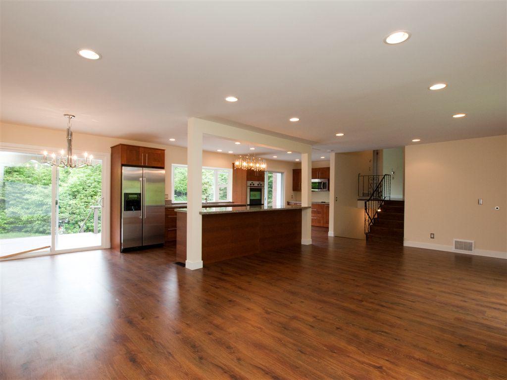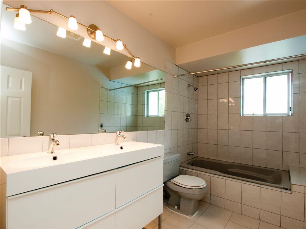 Lovely views of Grouse Mountain from this completely renovated three bedroom split level home. Located within a short walk to Collingwood School this open plan home sits on a very private 12,400 sq.ft. lot with an inground pool and hot tub. Gleaming hardwood floors, floor to ceiling windows, stunning new kitchen with granite counters and stainless steel appliances. Three spacious bedrooms up and a newly renovated bathroom, down has a large rec room, laundry room and a second renovated bathroom. Absolutely nothing to do but move in and enjoy!