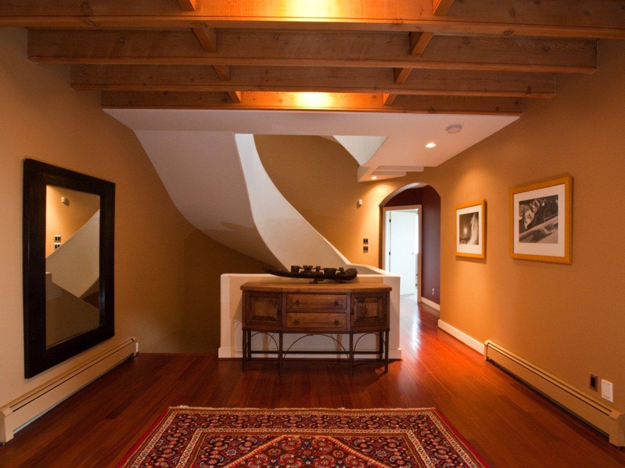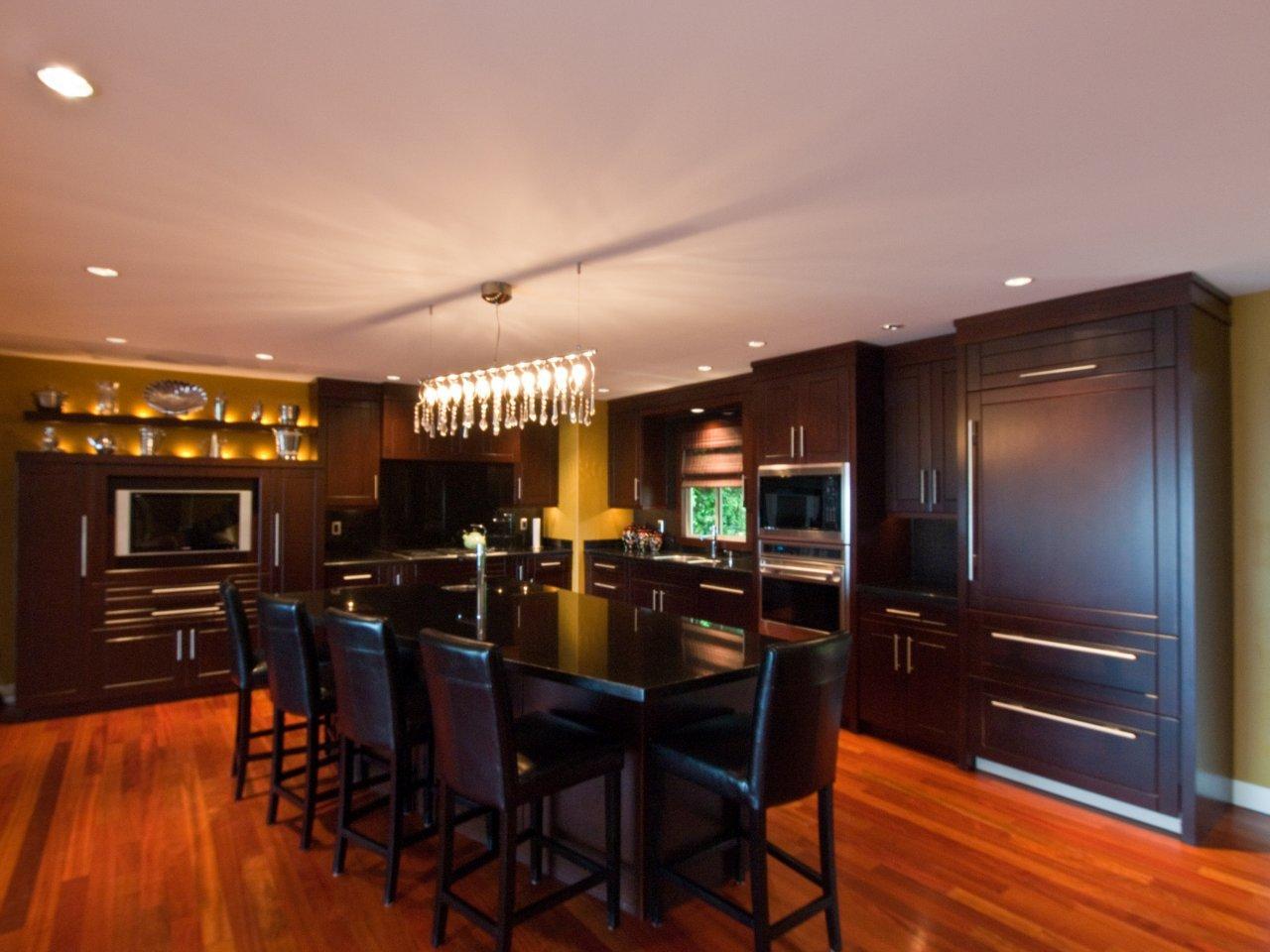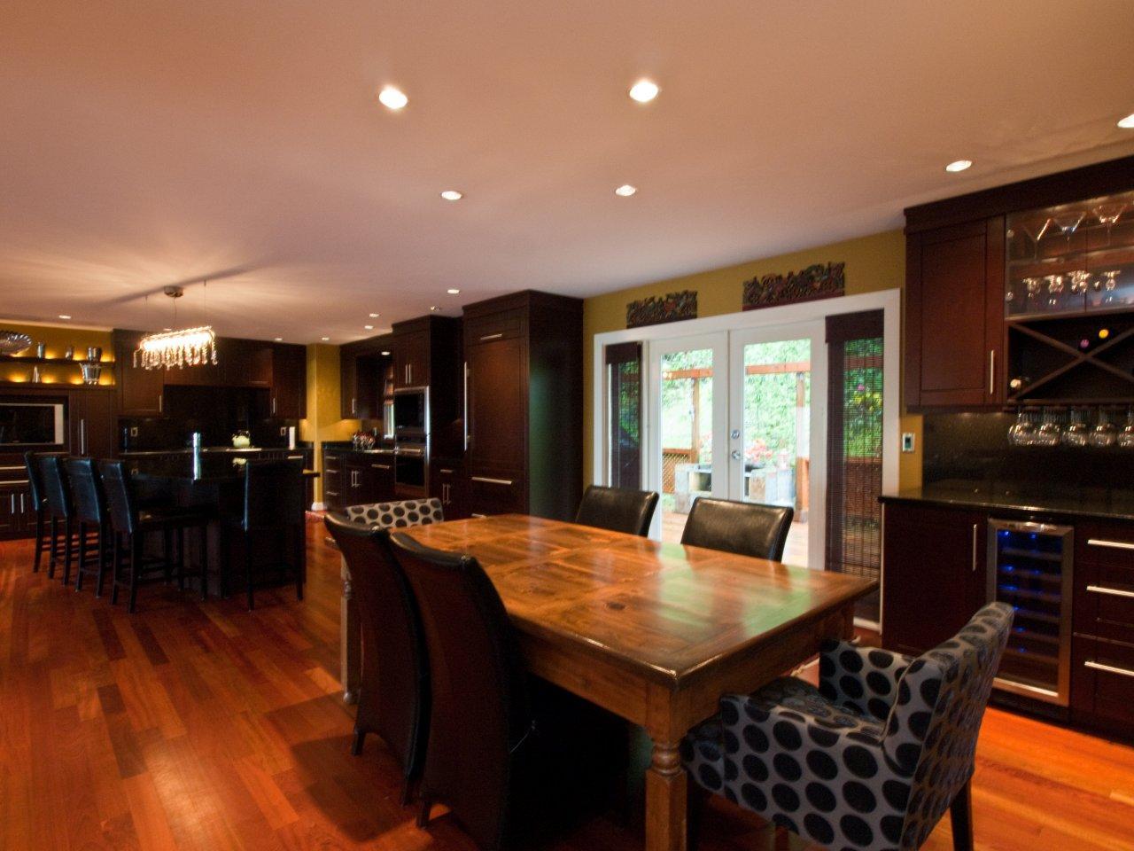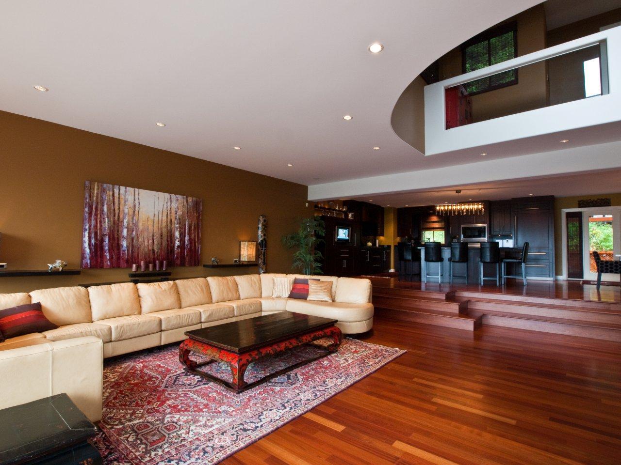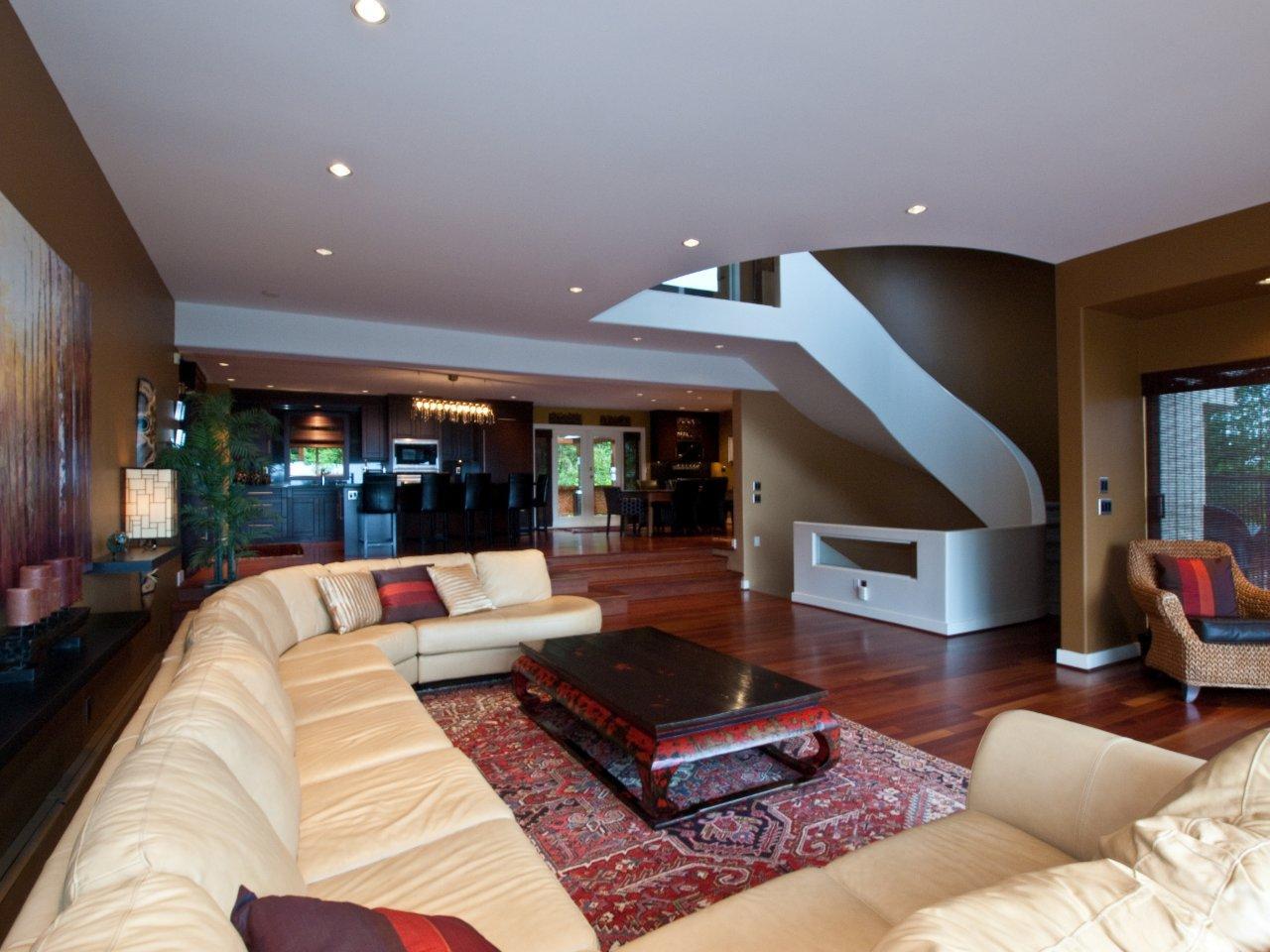 Stunning Upper Lynn Valley contemporary home has it all, gorgeous views, quiet cul de sac street, low maintenance yard and a sexy open floor plan designed for relaxed living and entertaining. Smashing top floor master suite has a gorgeous full en suite, a separate office and private deck looking out to the city and water views. Spacious informal main floor design with rich hardwood floors, soaring ceilings and fabulous city views center around a gorgeous granite and cherry wood kitchen with a huge centre island with bar seating and top of the line appliances. Dramatic foyer entry level has two en suited bedrooms plus a third bedroom or rec room and the lower floor could be private guest accommodation. A very dramatic house in sparkling condition!