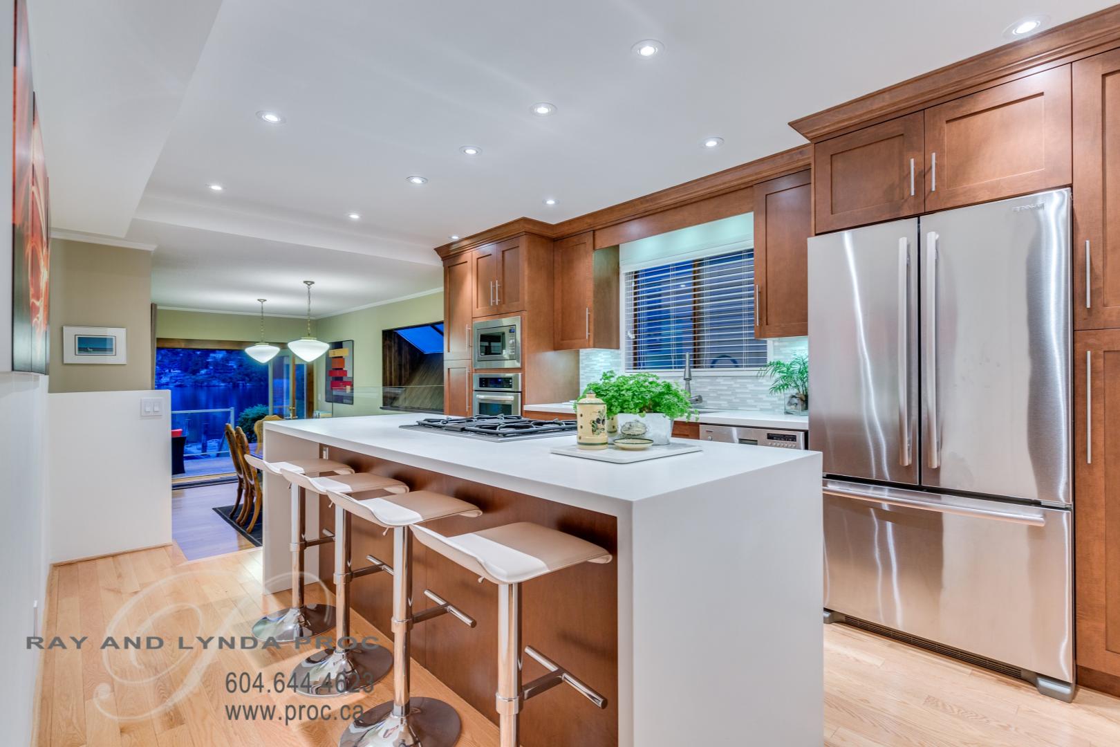 Tie up your boat to the private dock of this lovely three bedroom home on a lovely 33’x 142’ waterfront lot overlooking the tranquil waters of Deep Cove. Originally a small cottage a major rebuild in 1981 brought the home up to a new 2,200 square foot two level home with smashing views from the main floor and upper floor master bedroom. The kitchen was redesigned in 2010 with its clean lines and custom cabinetry offers two full size ovens and a gas range with white waterfall Corian counter tops and new hardwood flooring. A bright and welcoming dining area is the perfect compliment to the lovely kitchen and opens onto a large patio providing a lovely outdoor setting overlooking the water for those warm summer nights. Adjacent to the dining room the living room with its three sided fireplace is a lovely place to relax on those cold winter evenings! The upper level has three bedrooms including a lovely master with sliding doors opening onto a private deck overlooking the water. A large upper floor family room provides the perfect area for a quiet home office or late night T.V. A bonus is a free standing legal suite below the street level double carport that was renovated in 2012 and can be used for guests or revenue, fully self-contained with a view deck. The owners have enjoyed this home since 1968 stepping out their front door to walk the trails, enjoying the shops and restaurants of this charming area or relaxing on their private dock…. now a new owner will have this very rare opportunity to create their own memories in this truly unique area.