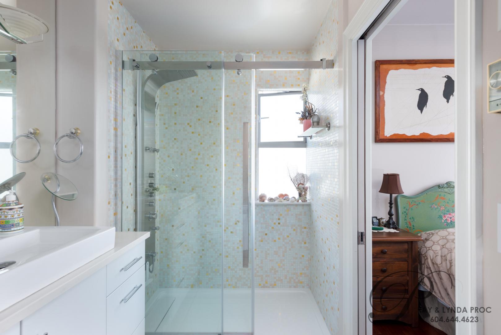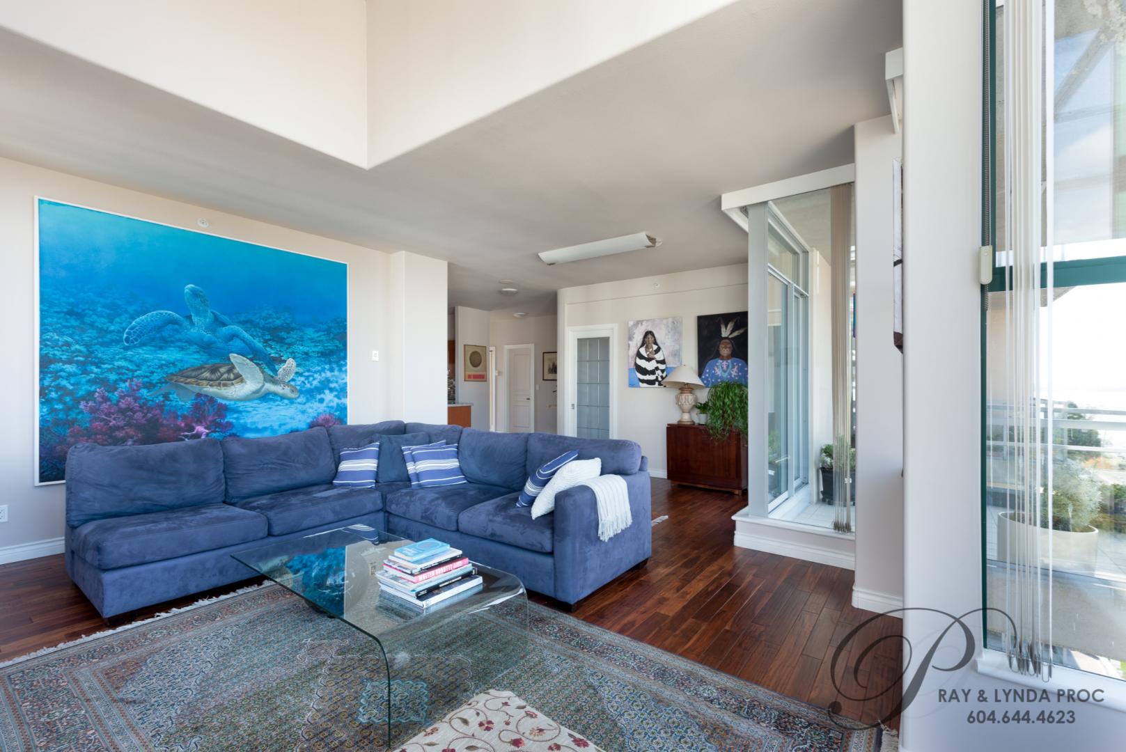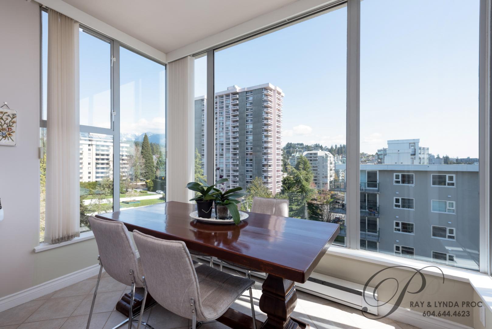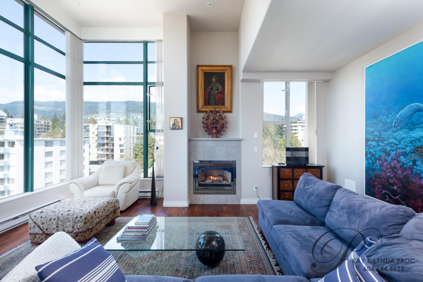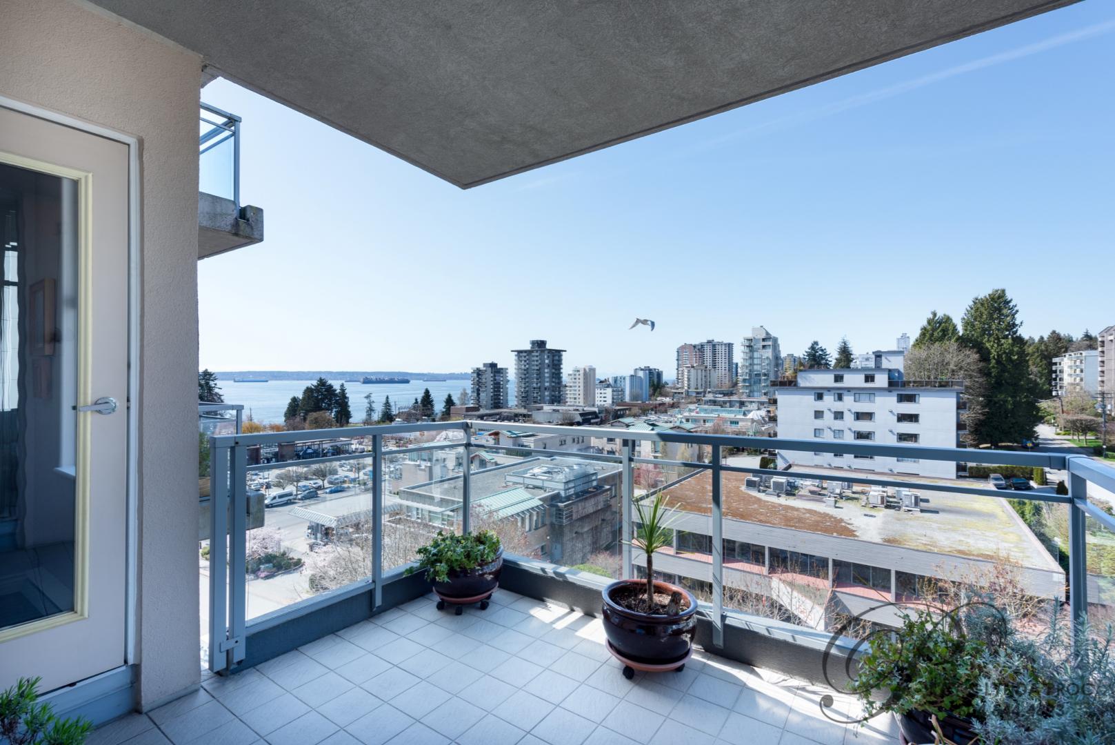 Spacious, bright, soaring ceilings, morning and late afternoon sun…… this sub-penthouse in the heart of Ambleside has it all! Lovely city & water views from all rooms, 1555 sf on one floor with soaring ceilings and a gas fireplace in the open plan living and dining rooms. A private den opens out to an 80 sf west facing deck. The two large bedrooms will not disappoint, the master with a four piece ensuite and the second bedroom with a three piece semi-ensuite. The pretty full size kitchen with a separate eating area has stunning views of the Lions Gate Bridge and could easily double as a home office. An incredible location with all of Ambleside at your front door…. two parking, a guest suite to accommodate out of town friends plus pets are allowed so bring Fido – a rarity in West Vancouver! Sorry no rentals.