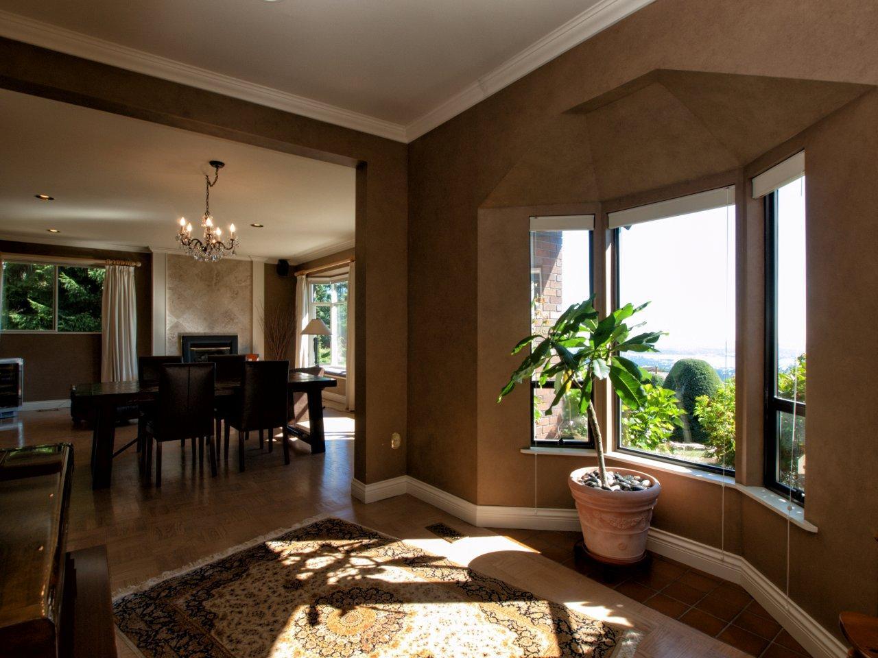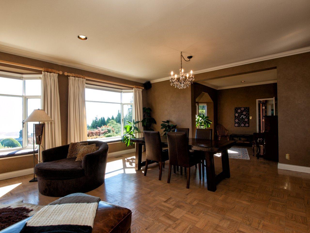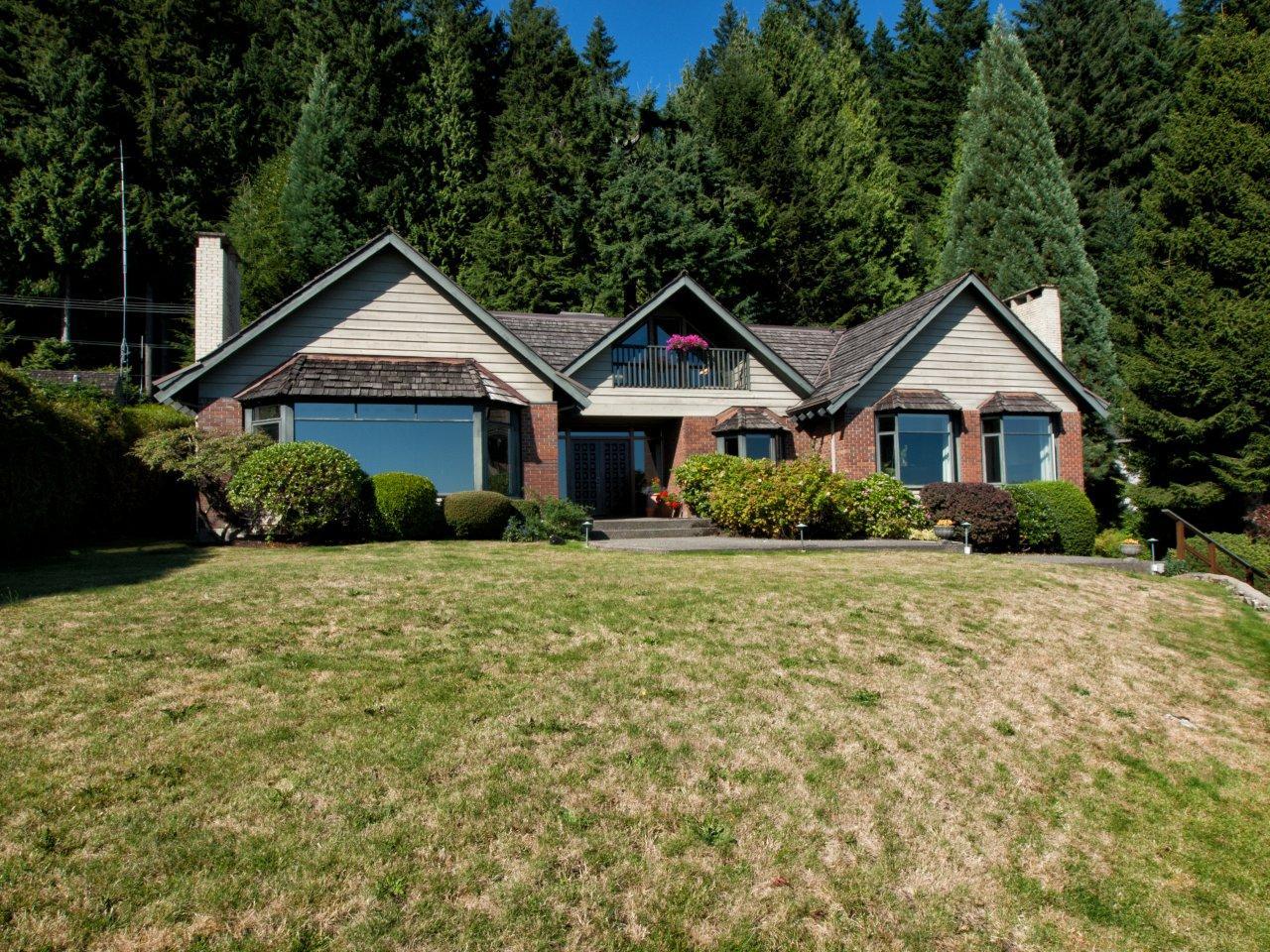 Lovely 5600 sq.ft., three level home on a gorgeous half acre level private lot with stunning views. Spacious main floor offers a large formal living room, huge open plan informal sitting, dining and family area, office and galley kitchen. Master bedroom is on the main floor with a 5 piece ensuite plus two additional bedrooms. Hardwood floors, crown mouldings and window seats create a warm inviting atmosphere with all rooms facing the amazing views. Top floor is a loft area with a guest bedroom, bathroom and sitting area plus lots of underdeveloped area for further expansion. The lower floor has a fifth bedroom, full bathroom, rec room and tons of storage.....undoubtedly the best priced home in the British Properties today!